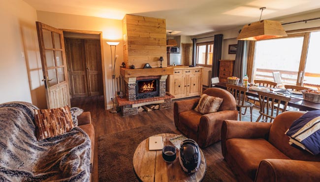 The Hotel le V**** is part of the Domaine du V**** in Vaujany, which also includes two chalets: La Perle de l’Oisans**** and La Fedora****. They comprise 17 apartments****, which are particularly spacious and comfortable, all equipped with an authentic fireplace.