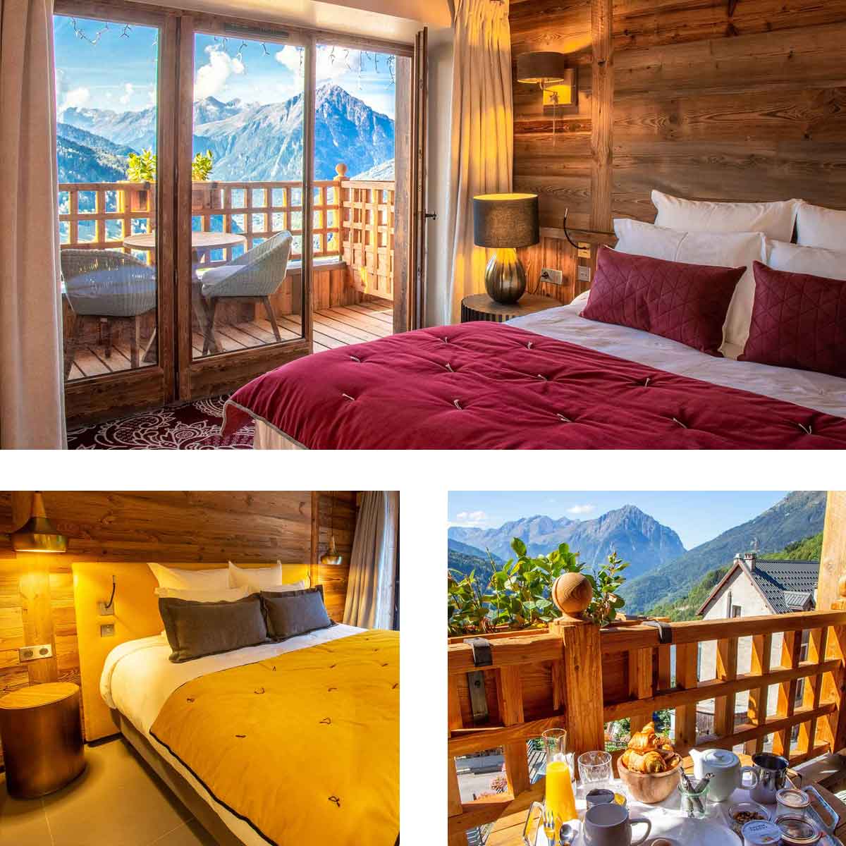 Every room is designed for your comfort: warm materials, quality bedding, soothing views of the Oisans mountains, and quiet surroundings. Most rooms come with a balcony.